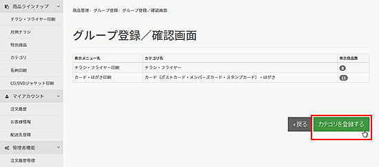 登録するカテゴリを確認後、[カテゴリを登録する]をクリックします。