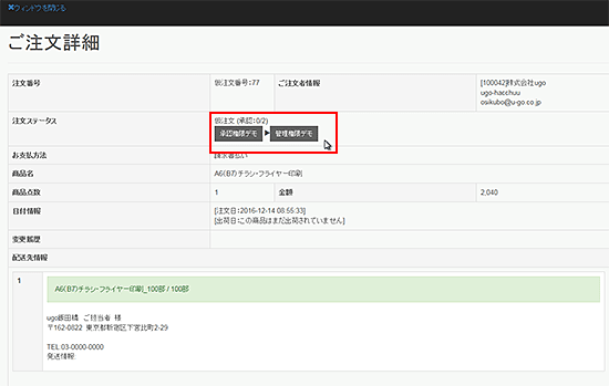 注文内容、および入稿データをご確認いただき、内容に問題が無ければ[発注承認]で正式にご発注いただけます。