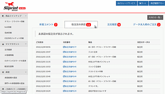 承認機能とは正式なご発注前に注文内容・印刷データをご確認いただける機能です。