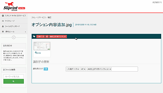 入稿ファイルを確認すると、ストレージサービス上で入稿されたデータをご確認いただけます。