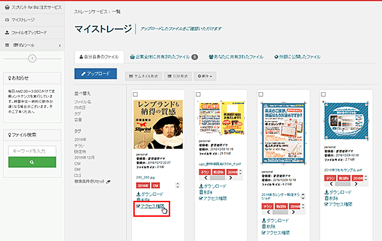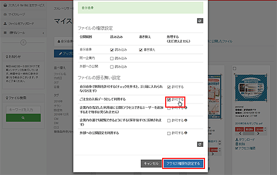 ご注文の入稿データとして利用するの-許可する-をチェックし、「アクセス権限を設定する」でファイル情報を更新します。